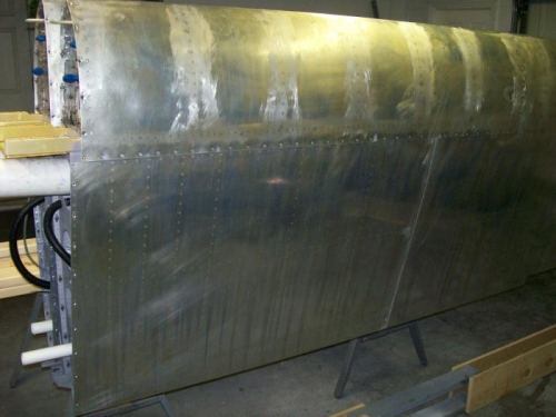 Finished the plate nuts on the leading edge of the other wing. scuffed a few rivet lines and then etched and alodined both wings.They are now ready for transport to the paint shop. I had mentioned before that I am making such a mess in the garage and the paint is coming out a little dirty that I decided to rent a proffesional paint booth for the wings.