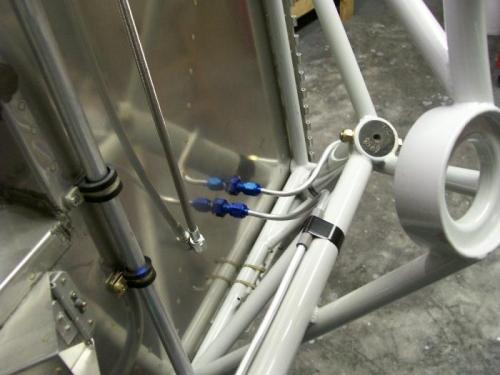 Tonight I added a hose for the fuel pressure into the sensor block, Ran the brake lines from the forward firewall to the calipers.