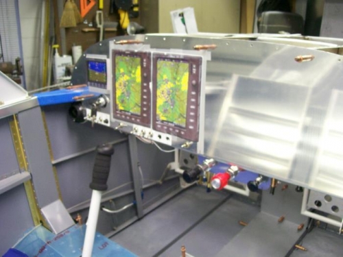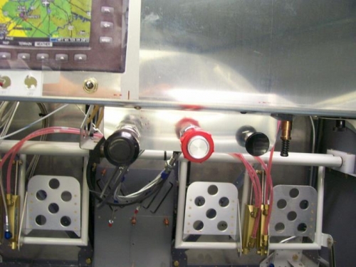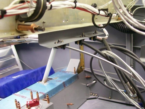 Spent the evening working on engine controls. Picked a spot where I wanted the knobs and decided spacing. I used 2.75" spacing between knobs and have the throttle located directly middle of panel. Cut the mounting bracket to size and rounded the corners. Drilled for cables. Drilled bracket for mounting and added platenuts. Inserted cables and screwed to panel. This allowed me to mark the secondary bracket for proper adel clamp locations to hold the cables. Drilled the secondary bracket and added adel clamps. Mounted the entire assembly.