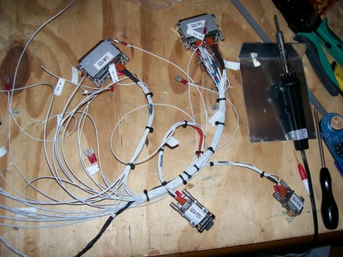 Removed the oil cooler and alodined the aluminum brackets and hose connection. The bolts I had used were a little too long so I used the correct bolts and remounted the cooler. I also sealed the shroud with black RTV. Installed the new oil hoses that Tom at Flightline made for me. Perfect size and length. Also used new steel fittings I had ordered. Moved to the living room and worked on the harness. Soldered up the Can Bus and configured to the right shape.