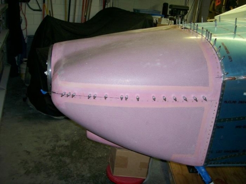During all the baffle work the top cowl comes on and off a million or more times. The bottom about half that. I left the horizontal hinge loose from the top cowl to make install and removal easier. I am about done with the baffles so I drilled the hinge. With this clecoed in place the cowl is very rigid. It feels like you could pick the plane up by the cowl. Giving a picture of the spinner gap and it came out very nice. Still a little sanding and filling but not bad.