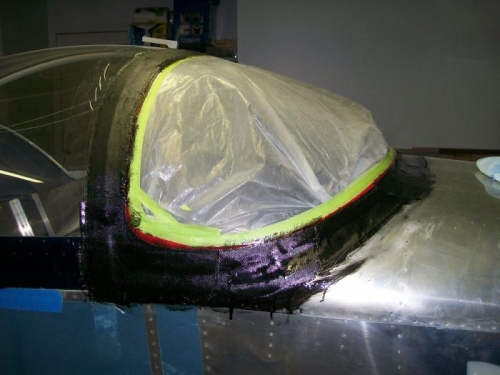 Spent a good part of the day working fiberglass for the windscreen fairing. ended up with six layers on the top and about eight on the bottom forward. After finishing the layup I worked on the cowling.. Trying to get the spinner gap just right. Close but it will take some more work.