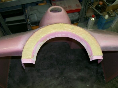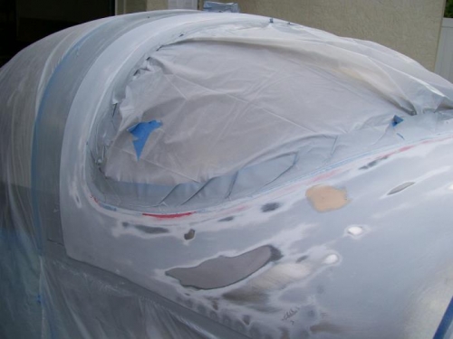 I sanded some of the fairing ripples tonight. I am amazed at how easy they came out and now how good it looks. I will prime again tomorrow night. Sanded a little on the nose and then added filler to the bottom cowl nose. Then spent some time sanding the top cowl and added a coat of epoxy to help with the pits, Then spent time sanding one of the top gear leg fairings and then adding epoxy.
