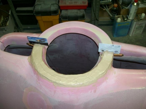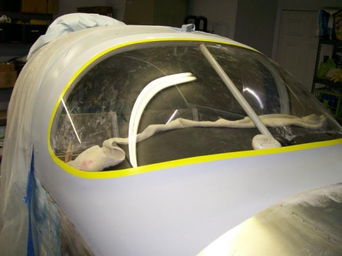 Sanded th inlet ramps that I had put micro on last night. Changed the bolt for the mixture because it had been hitting the inside of the cowl. Then re-installed the cowl and checked fit. Added micro to the nose of the cowl. Removed the masking from the windsceen and the first layer of tape. I am very happy with the fairing. A little more final sanding with 320 and it will be ready for paint.