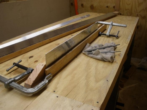Deburred edges of spar webs for wings and center section. polished on scotchbrite wheel. checked size using assembly jig fixture and filed to final size where oversize. This work took so long because it also required cutting the remaining 0.040 in half and moving it to other storage, plus getting the 12-foot pallet it came on out of my shop. Just to be safe I took some time to go back over the plans and make sure I don"t need any more pieces of 0.040 longer than six feet.