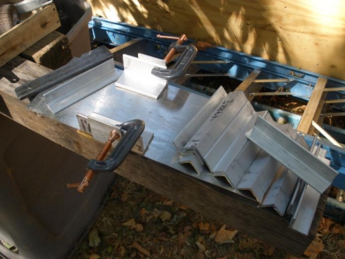 cut out the second to the last reinforcing plate of 4130 steel, plus cut out 12 rib-attach angles of 0.125" x 1" x 1', each about 5.125 inches long. Rough cuts, to be fit precisely later.