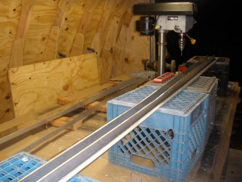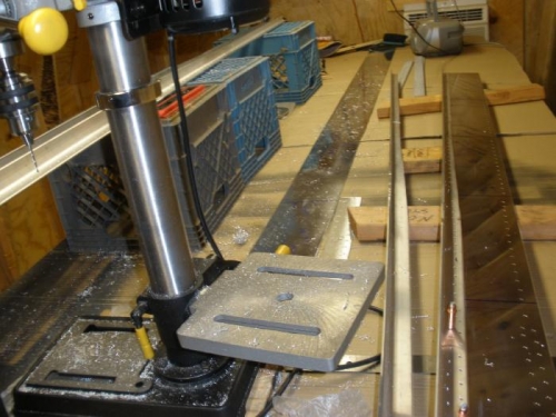 I decided to transfer the rivet hole layout from the spar caps of the left wing, onto the spar caps of the right wing. I drilled the initial, "locating" holes at 7/64 ths of an inch. Next I'll drill them out to number 30 when the spar caps, webs, and reinforcing plates are assembled together.