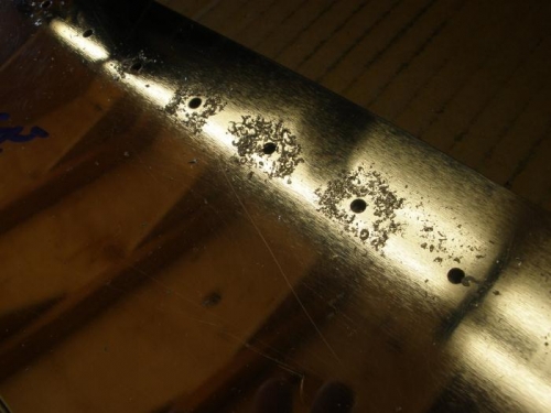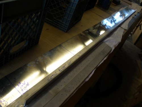 I was surprised by the amount of chips that were accumulated between the spar cap and the spar web, even in areas that were clamped together by the 2024 reinforcing bar. It was a good feeling to have these last rivet holes for the spars done. After deburring, nest step will be to reassemble the spar and drill for the rib attach angle bolts