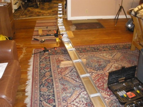 I began trying to set the dihedral, and ran into some problems. I need to adjust some clearances between the 4130 steel straps and other components of the wings. I may also need to do some trimming of the spar web on one wing to allow the wing mounting bolts to align properly.