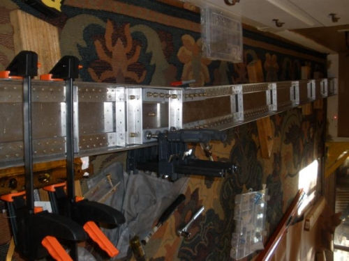 I finally got the wing spar root and center spar trimmed and shpaed well enough to set the dihedral. I got three of the bolts in place on the bottom 4130 steel straps. Will need to finish the rest of the bolts later.