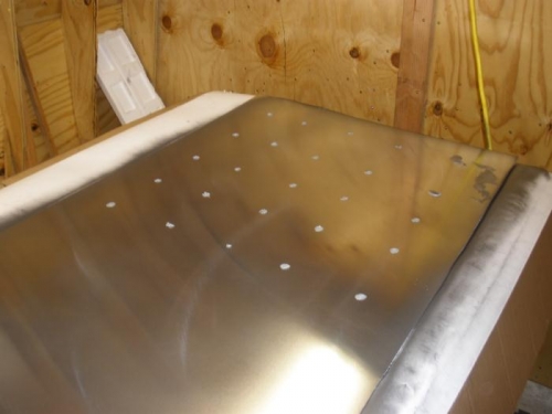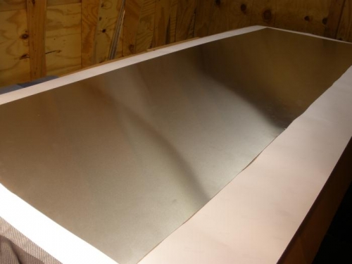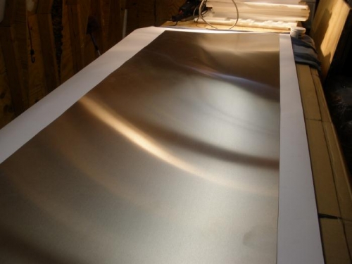 I decided to polish my wing skins before installation, on the theory that polishing a flat sheet on a table would be easier than polishing the wings after assembly. I used the three-part Nuvite system, applied according to the instructions on the Sonex web site. The images below show how dull the sheets were before polishing. I will put in another log entry with the "after pictures."