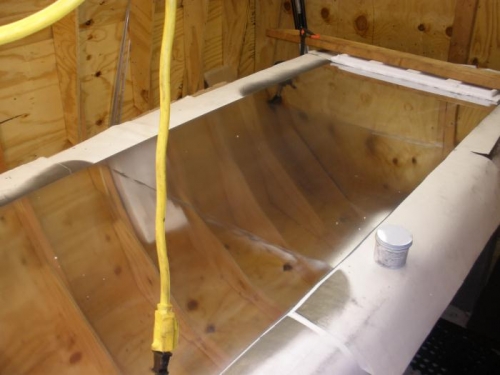 It took me 8 hours to do just one leading edge skin. I did four passes with the F9 polish, two passes with the "C" grade polish, and then two passes with the "S" grade. Image 1 below shows the process partway through, and images 2 and 3 show the finished product. The mirror finish reflects the ceiling of my gambrel-shed workshop pretty well.