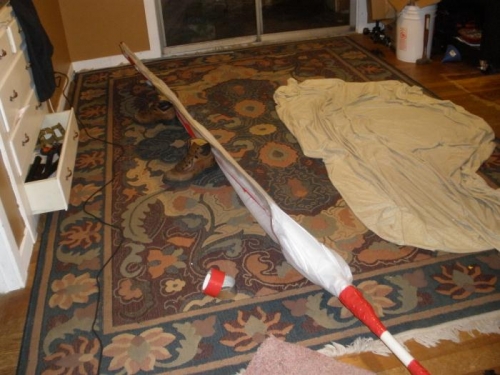 I used the vacuum forming process to bend the leading edge. This was my first attempt at vacuum forming, and it went surprisingly well. I put a couple of minor kinks into the skin in the process of rolling the skin around the pipe in preparation for the forming. I was trying a little too hard to alighn the two edges at exactly 3/4 of an inch offset before the forming, and in the process of trying to tape those edges I kinked the skin. But the kinks were small, and away from the actual radius of the skin, so I think I'll be able to press them out.