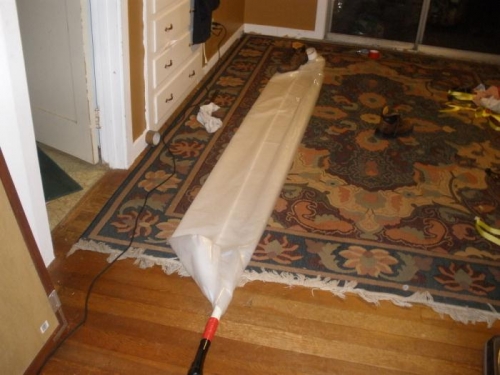 Image number one shows the assembly with vacuum applied. one of the interesting things was that it was not necessary to tape the entire length of the plastic, as I did with the first bend. This time I just pressed the film together with the vacuum running, and the external air pressure caused it to seal. Images 2 and 3 show the finished product.