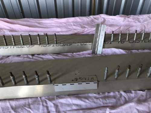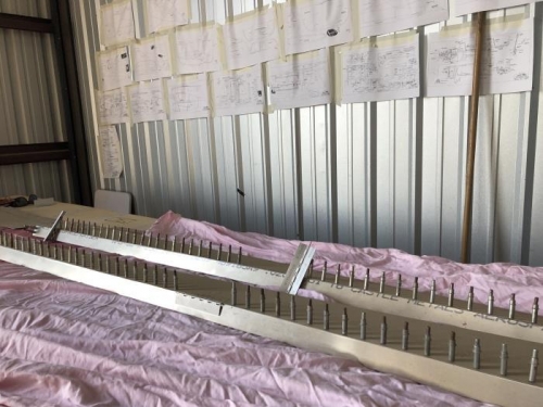 Located and arranged the ailerons and aileron hinges that were previously bent and clecoed.