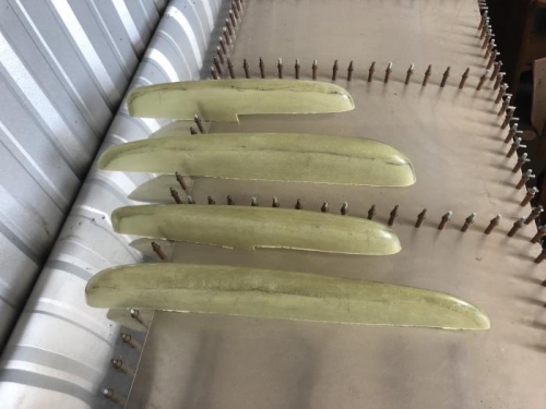 Received and inspected the fiberglass tips for the wings and elevators. These were ordered from Earnest Martin as recommended by Dave Thatcher in the plans and manual. I am grateful to Tom Stallings for advising me to get these parts on-hand before building the elevator and the outboard wing panels, so that they can be built to fit exactly to the fiberglass rather than needing to adjust the fiberglass to already-built aluminum parts.