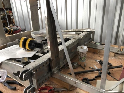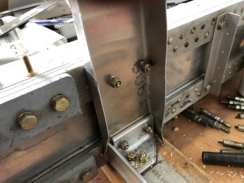 Got the F5 bulkheads fastened to the center section main spar, lower longerons and upper longerons. Took awhile to fit them but once in place they look good. Noted a problem with fitting the F3 bulkheads. Looks like the F3 Bulkheads are supposed to extend through the notch where the lower longerons are bent, and in order for them to do that the vertical angle at F3 has to align exactly with that notch, and as of now mine don't. Need to check all my measurements and see whether to move the angle or the notch. Still struggling with fastening the gussets at firewall / longeron junction.