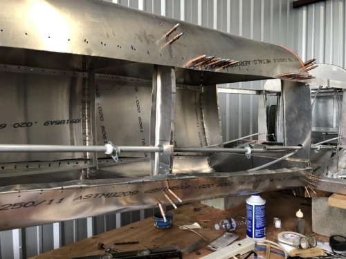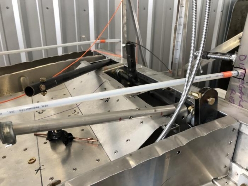 working on elevator pushrod and rudder cables. hung on FMN-10 bearings for pushrod and started fabrication of threaded mounts for MM4 rod ends