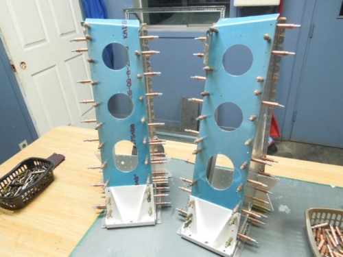 During that evening work session, I scuffed all the parts on the MLG Box assembly (per ref DWG 62), and did the required fluting on the box webs. Then I assembled the box with cleco again