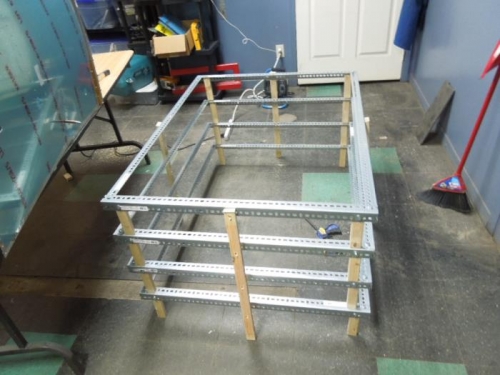 Again, another day of shop organization ! I finalized sorting out the rivets and puting them into hardware bins. Then, I moved on to make frames with steel angles for later use. The objective with these frames are to hang parts inside frame, then bring the frame to the paint shop such that my painter does not need to handle parts, just paint them.