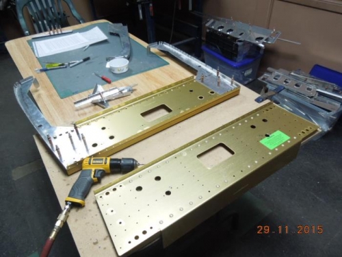 Per previous post, this work day started with long discussion about usefullness of modification on bulkhead F866B-1 for avionic access, and the quality of the work done. I followed this by cleaning the shop to start working on the fuselage center section.
