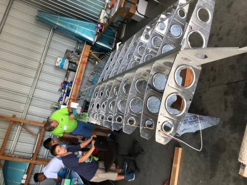 Wing skin preparation made good progress. Organizing the wing skin parts. Removing blue plastic from one side and away from the rivet holes. Deburing the edges and holes.