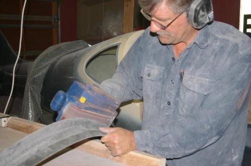 Continued marking sand trimming the canopy frame. Put the floodlight inside the cockpit to make it easier to see the gap. Changed to the belt sander to help keep the bottom lip edge smooth. Slow work but not hard.