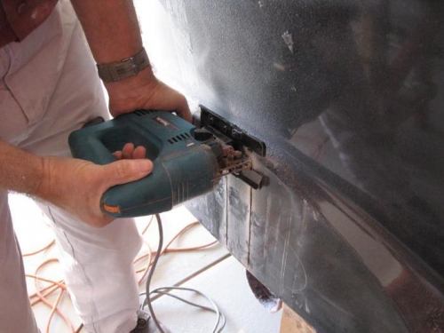 Measured spar front to wing front on both wings - used this to calculate cut out in wing root for spars. Cut holes with dremil cutter, then trimmed with jigsaw on very low speed and finished with 120 glass paper. Measured spar box hole location (checked!) then pilot drilled and drilled holes out.