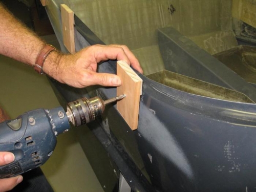 Made up 6 blocks to hold frame 3mm inboard of sides of fuse. Mounted the blocks and sat the frame inside the blocks. With the blocks holding the frame in place I can now start trimming the "bottom" flange of the frame until it fits nicely on the fuse lip under the frame.