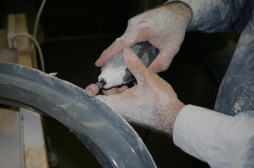 Marked up first general cut on the bottom lip of the canopy frame - ie, the lip to be trimmed to sit on the fuse around the cockpit area. Used the dremil cutter then dremil grinder to do the bulk cutting. Garage full of white dust (glassfibre) and black dust (carbon fibre).