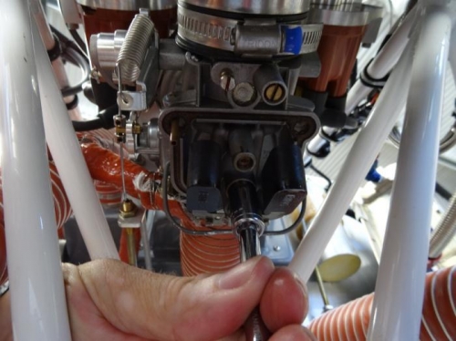 The first engine start up produced an idle only (engine stopped as soon as the throttle was opened or the choke reduced) - so today I pulled the main jet and needle seat to check for a blockage - none found. The 2 floats were not quite even so I levelled them and made sure they were operating bowl fuel valve properly. Next step is to restart the engine and see if the fuel delivery problem has been fixed.