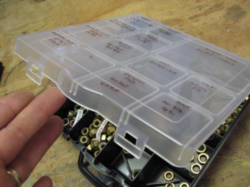 Purchased a number of small plastic storage trays. Sorted all the fastenings and stored by type and size into trays (Peter T idea).