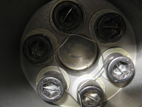 UPDATE - wired the bolts. Not proper lockwired because the flange is too deep - but for any bolt to unwind more than 1/4 turn the wire will have to be broken ..............