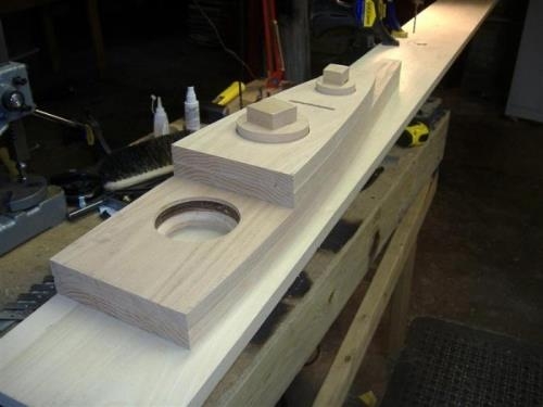 Finished the routing and sanding of the rib form blocks. They are made of oak.