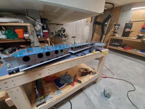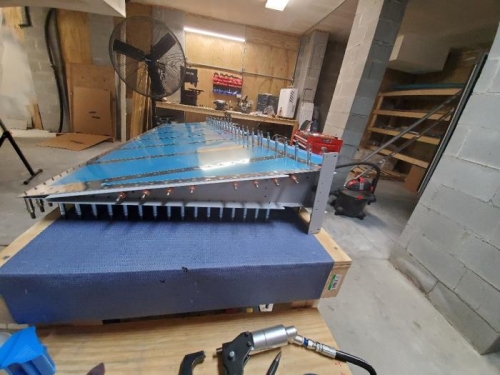 Clecoed the spar assembley on to the rudder skin assembley and attached the shear clips to the spar with LP4 rivets