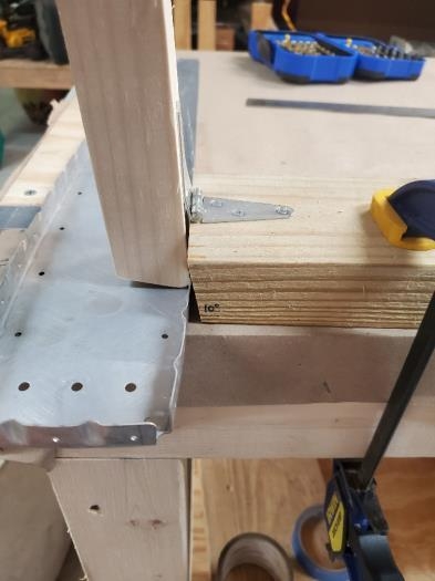 I made a jig today to speed up the process of creating a 90 degree bend in all of the flanges. I saw this on the Aerotoons blog and it worked well. I used a 2x2 hinged to a 2x4 which is clamped to the bench. The 2x4 has a 10 degree mitre cut which allows the flange to bend beyond 90 degrees but then springs back to 90 degrees. The 2x2 has a taper at the bottom and has a smoothed edge to prevent any creases. It certainly made the process quicker and repeatable. I squared up all of the tip ribs using fluting pliers, a seamer and the jig. Once it was all square, I attached the tip ribs together with counterbalance skins. Match drilling will be the next step.