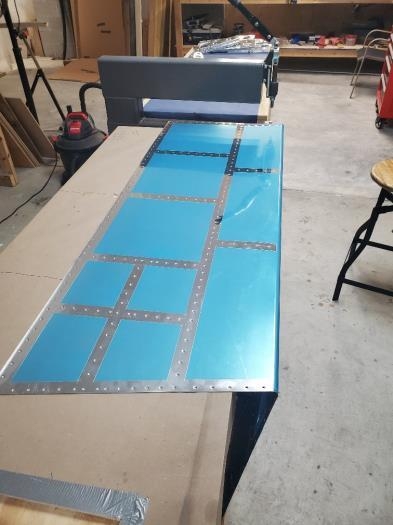 Pulled the HS skins and removed the vinyl along the rivet lines on both sides of the skins. Then used the DRDT2 to dimple them. There are a few holes on the outer edge and inner edge that don't get dimpled. Be sure to tape over them.