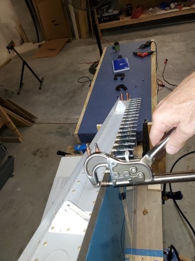 Riveted VS rear spar to skin with numatx squeezer and hand squeezer being careful not to rivet 6 holes on root on each side.