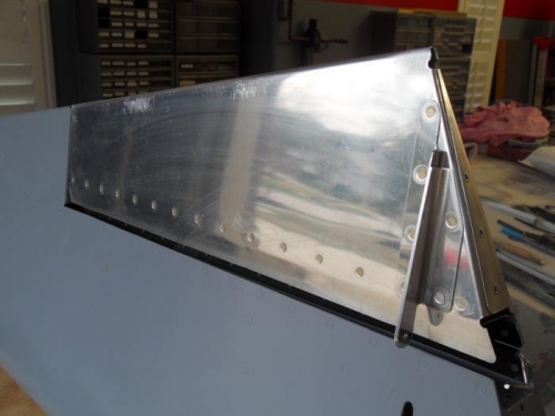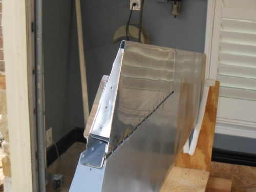 Today I completed the tab. Lesson learned. Man this thing takes some definite sheet metal skils to get right. If I had to do over I would order two tab skins and practice bending the ends to get the idea of how to work with the wood blocks to get the correct angle. Also using a flush rivet set to complete the bend is a must. Setting the pressure low and adjusting the pressure up little by little to get the right amount to bend but not dent takes a little trial and error. This trim tab is like learning to land a tail dragger. Not hard, but it does take practice to get the final product perfect!