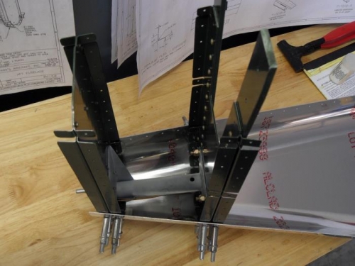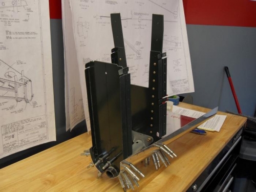 I've got a bit of a head scratcher here. I inadvertently left the tail spring mount installed while match drilling the skins. The second pic shows the forward flange of the mount with a gap at the top where it attaches to the F-712 bulkhead. I was able to slide a shim of 32 to 40 thousands to fill the gap. We'll see how it pans out once the keeper rivets are installed.