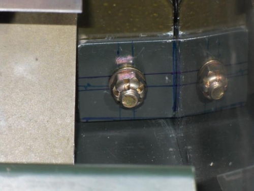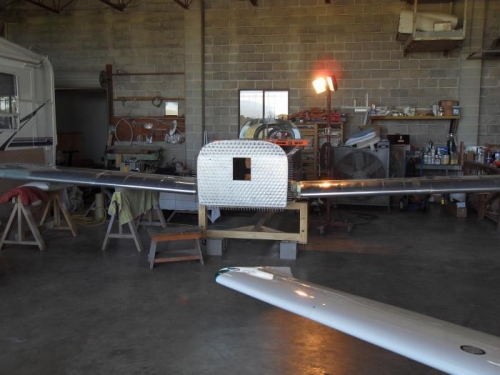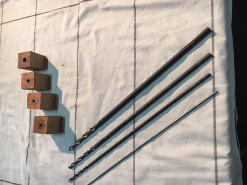 We spent the last two days leveling, checking and re-checking the sweep and incidence before drilling the aft spar for the 5/16" bolt. I made four 1 1/4" by 1 1/4" blocks out of hard wood to keep the 12" long bits square to the surface of the aft spar fork. I started by drilling a 1/8" hole almost all the way through the aft spar fork. Then I added the drill block with the bit inserted and clamped it tight with a C clamp. Then, I drilled through all the material. Next I stepped it up to a 3/16, then 1/4 and finally 5/16. With all the drilling complete I reamed the hole with a .311 reamer for a smooth precise fit. I ended up with plenty of edge distance all the way around.