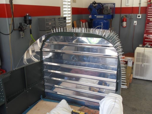 Spent this week cutting out a section of the baggage floor and fitting a cutout of the ELT I plan to use. I'll still need to fab a bracket to hold it securely in place. Next, I fit the top panel for the baggage area. A platenut jig really cut down the time installing all the platenuts. I still have the wear blocks to install.