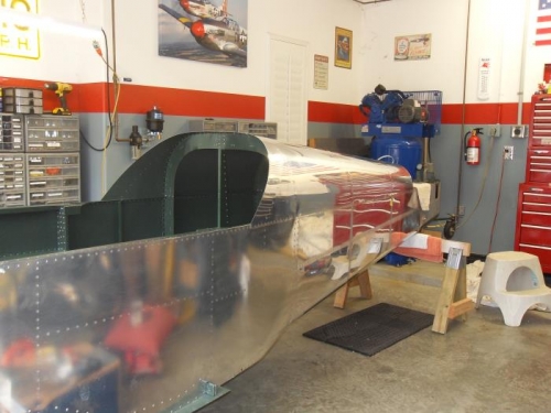 Sean came over again to help get the top aft skins riveted on. Before we could do that I needed to shoot some parts with primer. We then got started riveting on the top skins. He stuck with me all day and we were able to finish it up. Thanks sean!