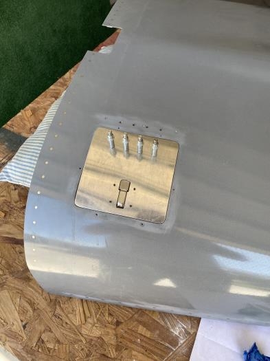 I needed a sanding break and decided to fab up a bracket for the ELT. For now I'm going old school with a 121.5Mhz ELT. With ADSB and a Mode C transponder I think this item may go the way of the dinosour some day. I also followed several builders who took some .063 and rolled an oil door for added strength and security.