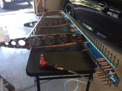 Cleco'd skin to skeleton and final drilled holes. Removed skin and deburred holes of skin and top rib, inspar rib, front spar and nose ribs. Marked pattern on skin, bottom nose and inspar ribs and VS per 6-6 to identify fairing screw holes.