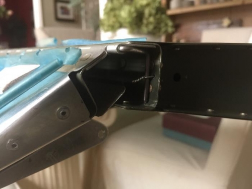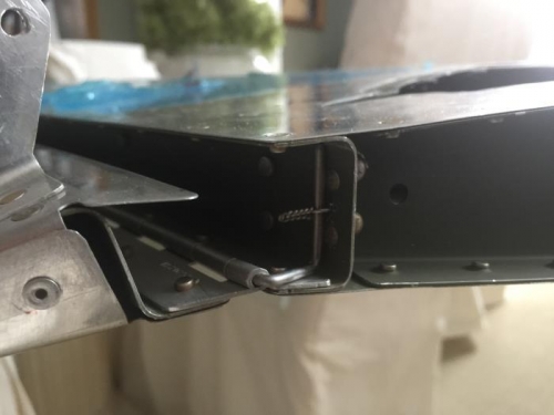 Drilled a second hole to safety wire tabs instead of following plans. Allowed the hinge pin to bend further in and more out of the way of the tab edge.