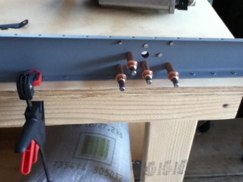 Begin riveting rudder nut plates to spar