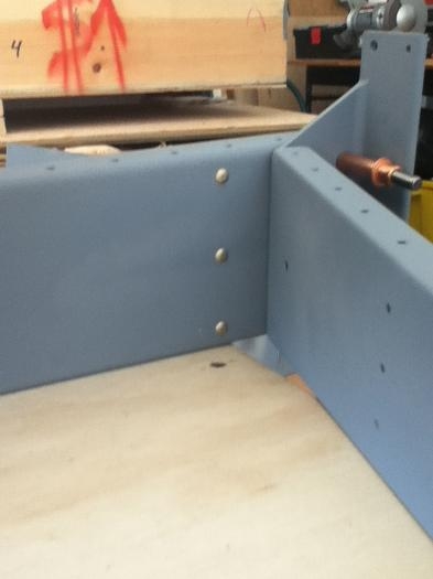 rivet nut plates to top and middle reinforcement plates. replace one rivet (4-5) with new on (4-6) because it was overdriven / too flat on the back. Rivet top three rivets (4-5) on bottom reinforcement plate