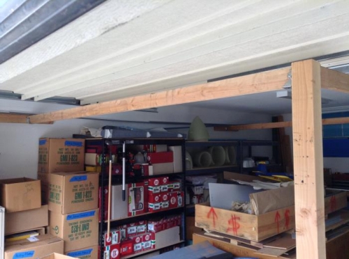 Installed 4x4 posts. One was glued to floor and screwed to ceiling (bracing boards screwed into ceiling joists). Second post was tied, using 2x4, to original post and wall.