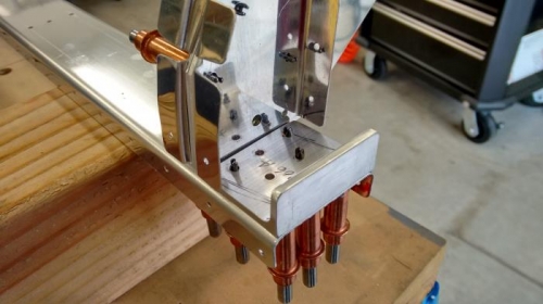 Clamp FL 906 A and B on 903 spar. Using holes in spar drill holes into FL 906 B and A.